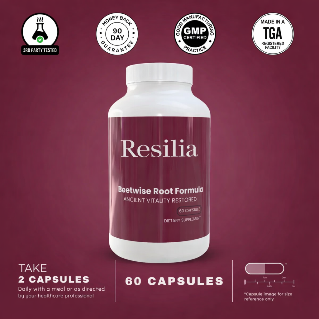Resilia™ Beetwise Root Formula is a premium beetroot-based supplement designed to support natural energy, healthy circulation, and daily vitality using cold-extraction technology to preserve active nutrients.